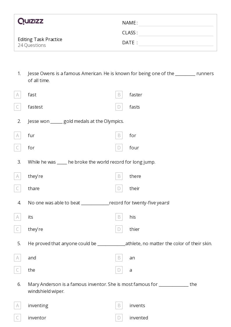 50+ Editing worksheets for 3rd Grade on Quizizz Free & Printable