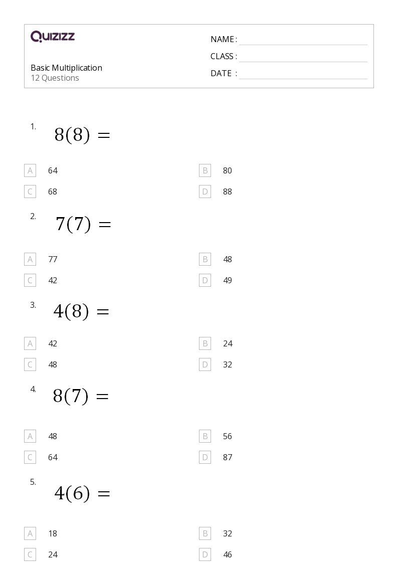 50+ Multiplication worksheets for 8th Grade on Quizizz Free & Printable