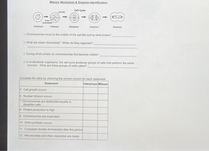 Solved Mitosis Worksheet \& Diagram Identification 1.