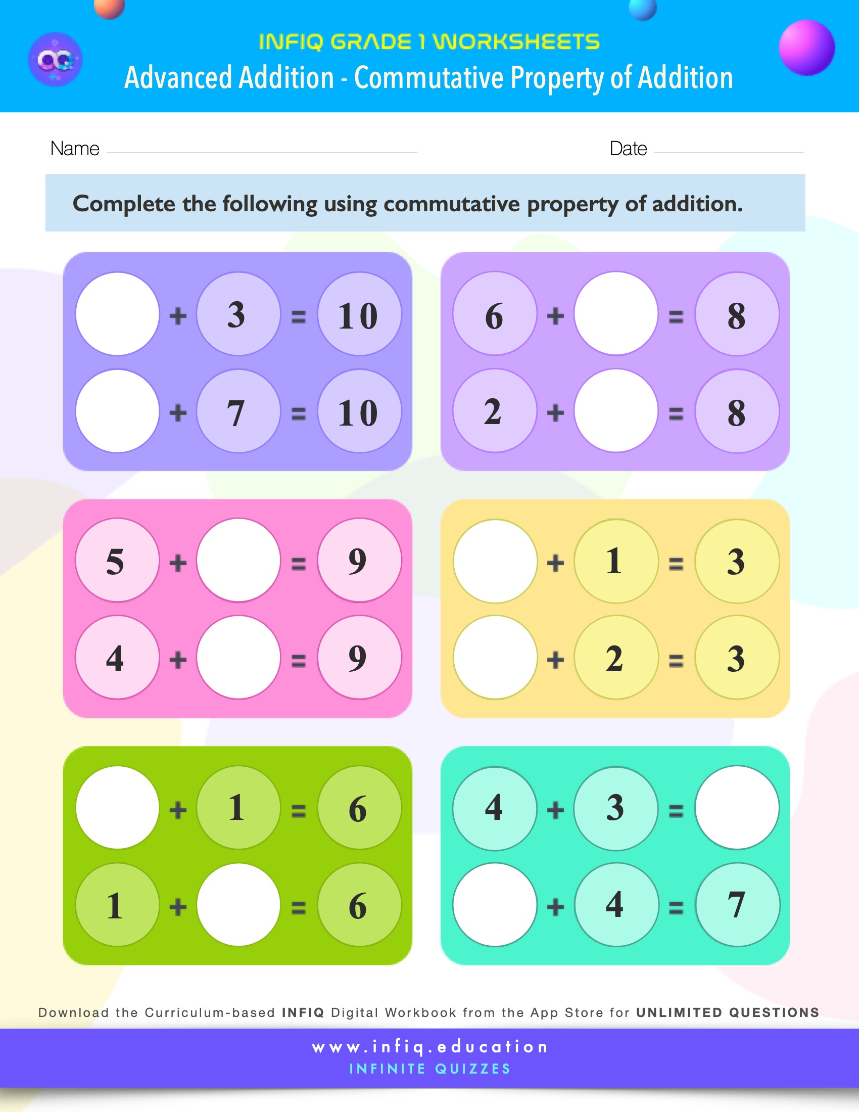 INFIQ GRADE 1 Math Worksheets Advanced Addition Commutative Property of Addition