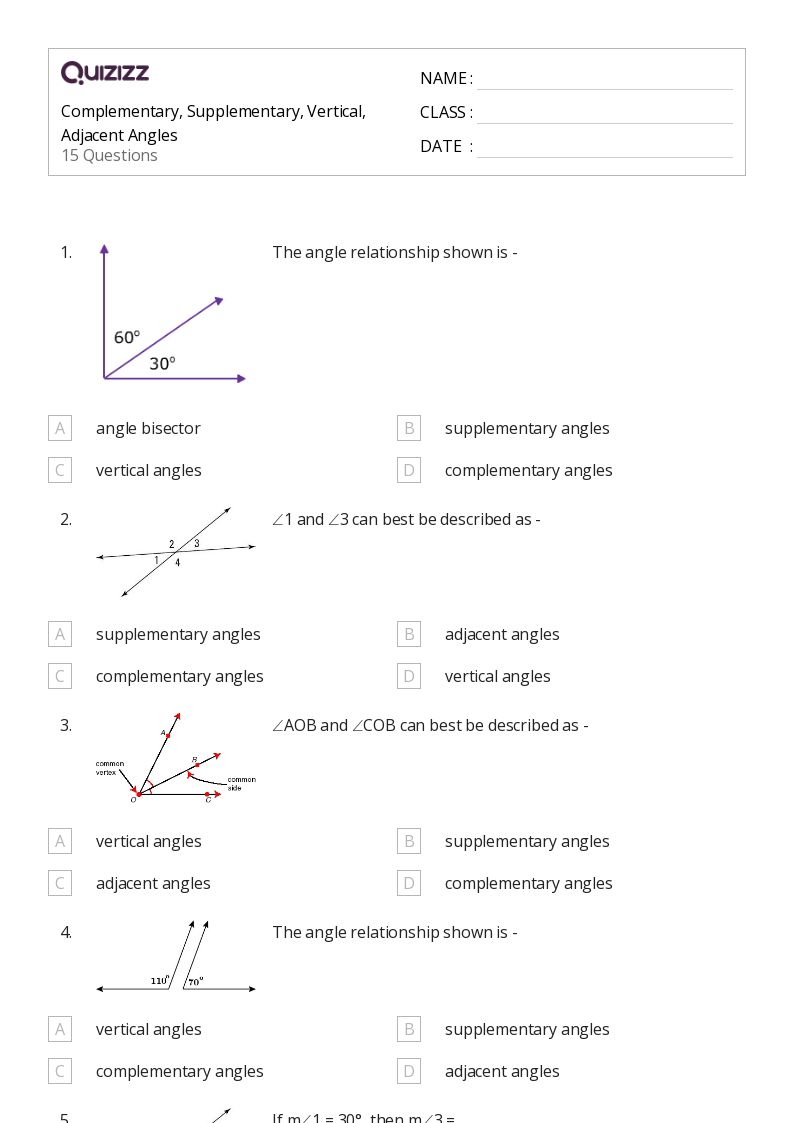50+ Complementary, Supplementary, Vertical, and Adjacent Angles