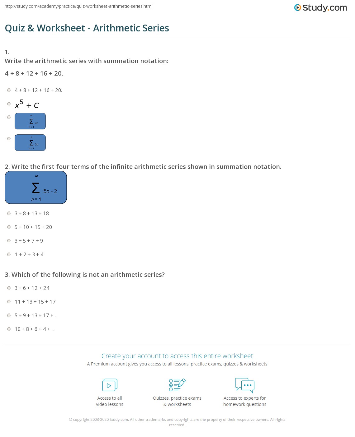 Quiz & Worksheet Arithmetic Series