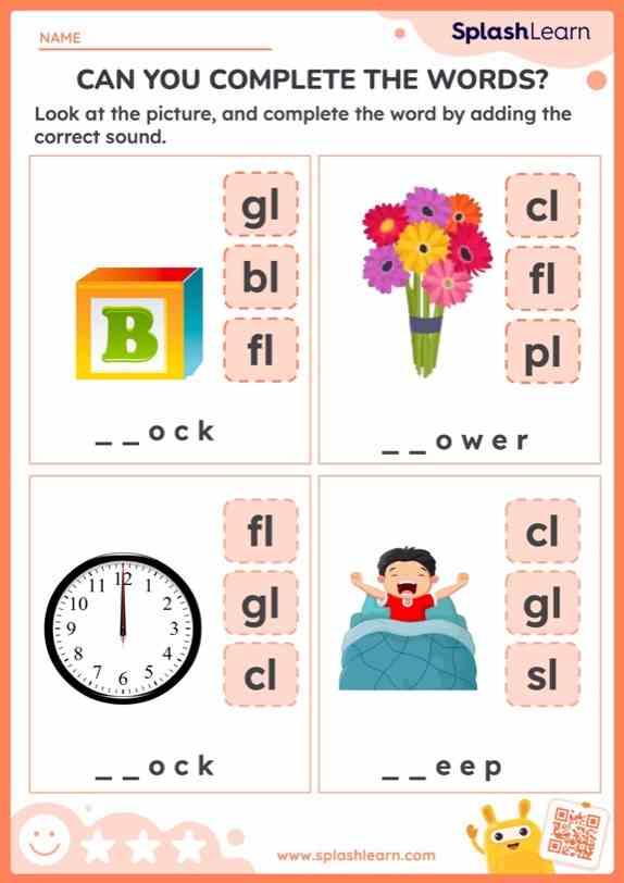 Initial Consonant Blends Worksheets for 1st Graders Online SplashLearn