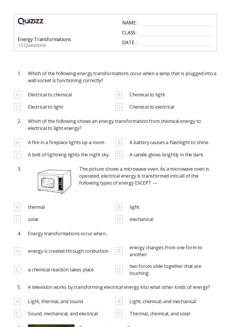 Activity Sheets On Energy Transformation