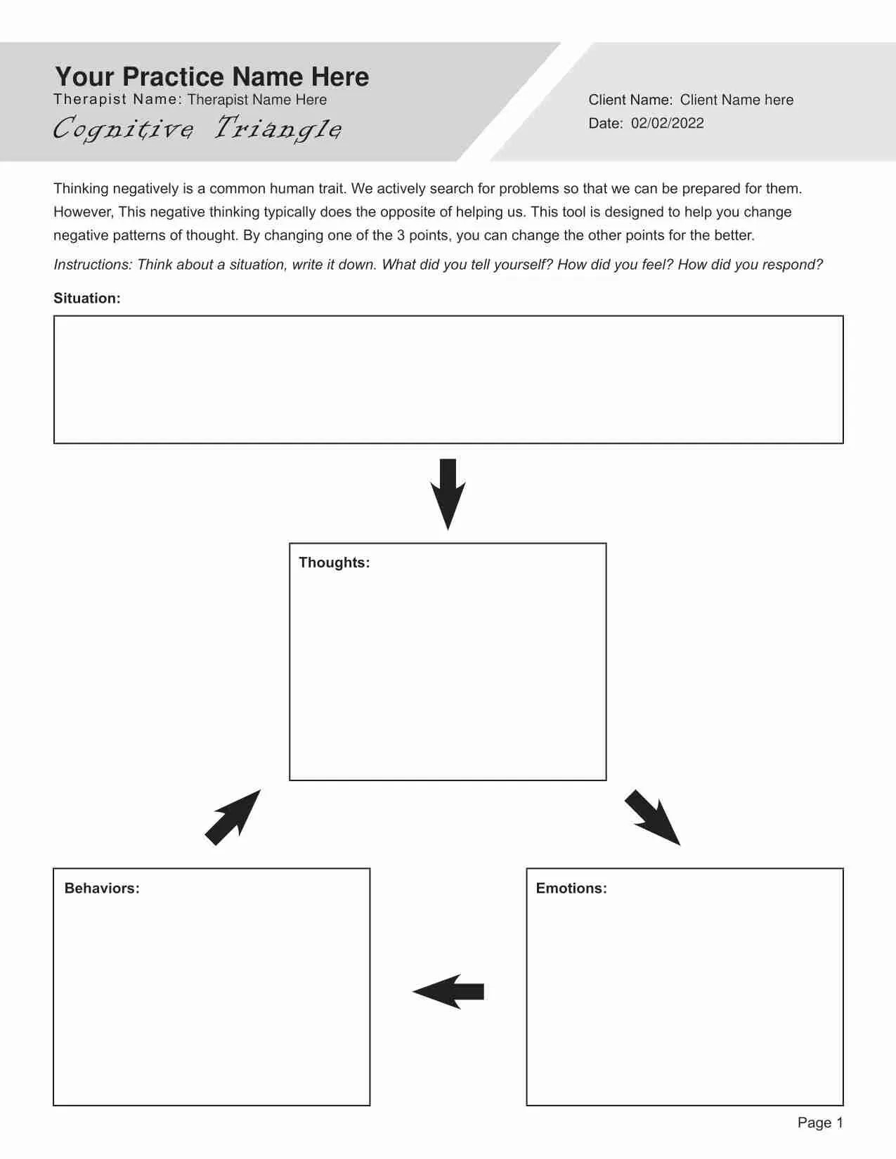 CBT Triangle Worksheet Editable Fillable Printable PDF Template