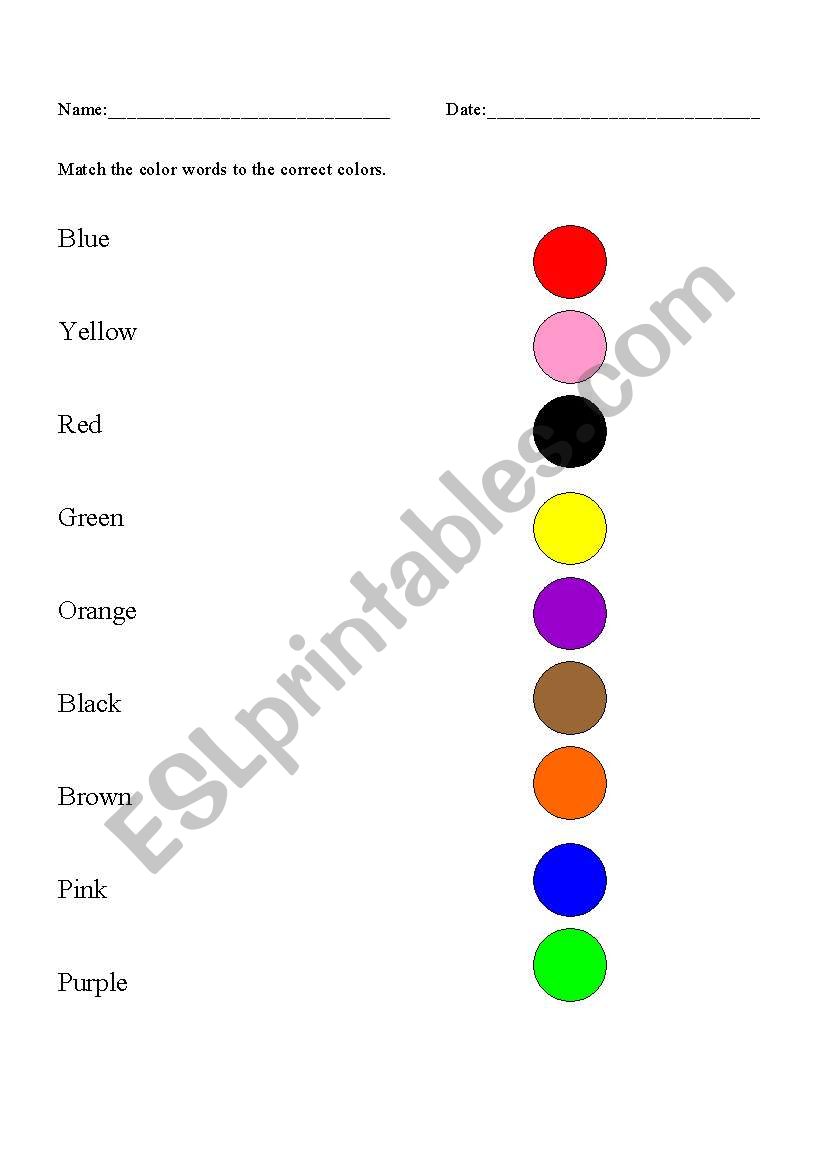English worksheets Color Words Matching Worksheet