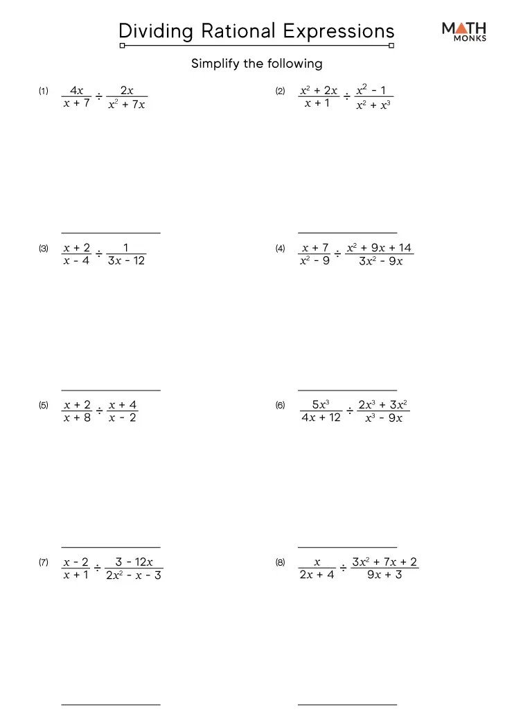 Dividing Rational Expressions Worksheets Math Monks