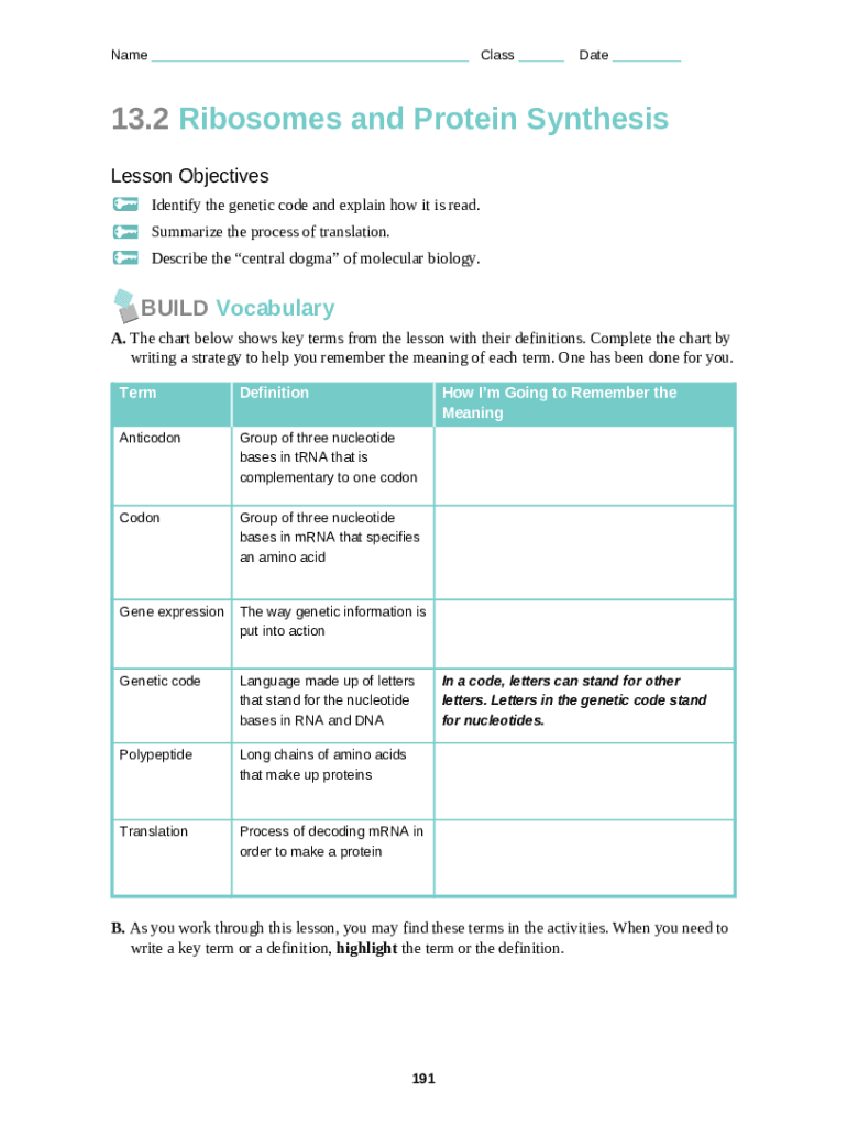 Protein Synthesis Worksheet Fill in DNA, mRNA, Codons & Amino Worksheets Library