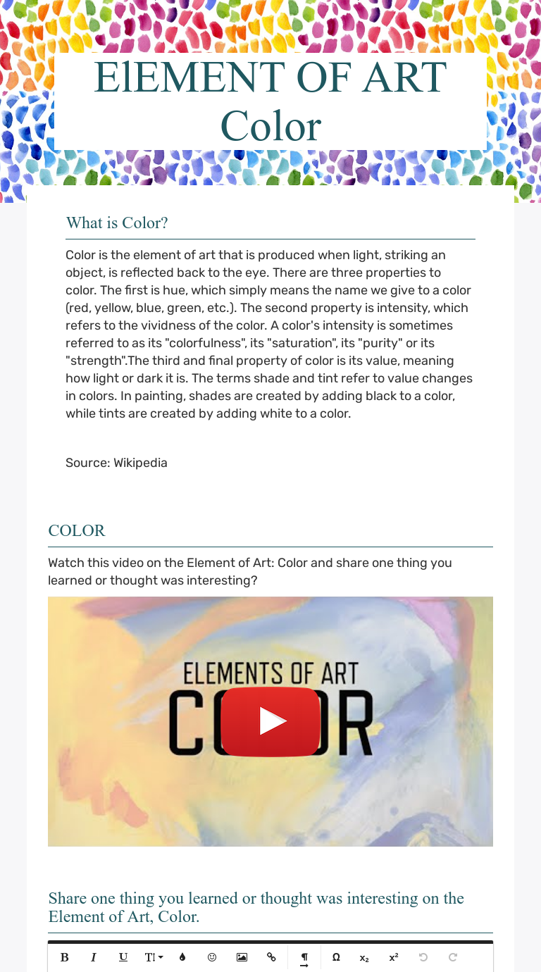 Elements of art Color Elements of art color, Art worksheets middle school, Art worksheets