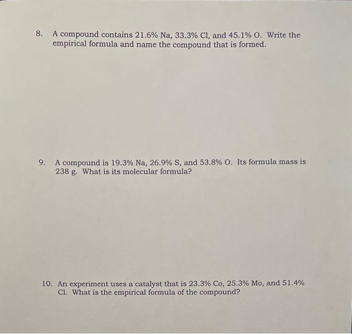Solved Empirical and Molecular Formula Worksheet Show ALL