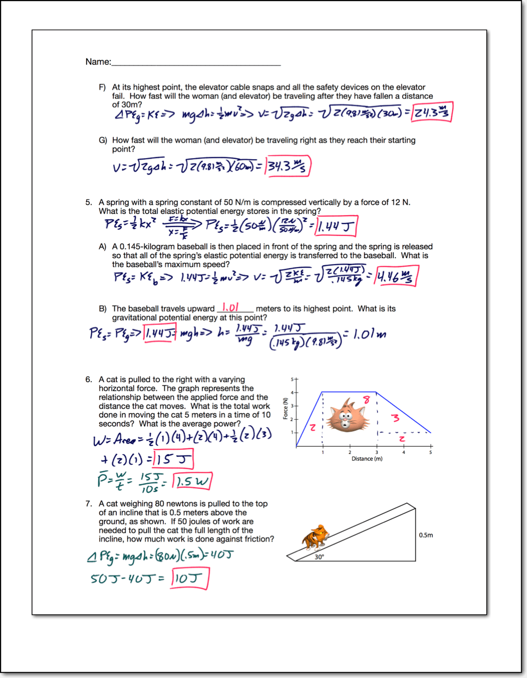 Energy Work And Power Worksheet Answers