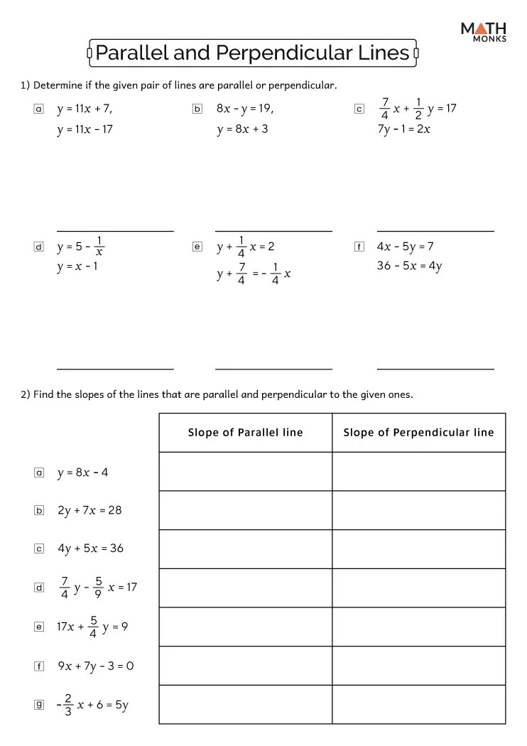 Parallel and Perpendicular Lines Worksheets Math Monks