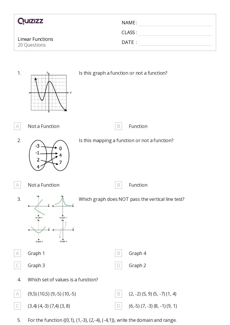 This collection aggregates all the math worksheets around the topic of evaluating linear functions. Download evaluating functions worksheets for students. Try these linear functions worksheets to identify linear and nonlinear functions from equations,. Each worksheet includes an answer key. There are a total of 20 worksheets.