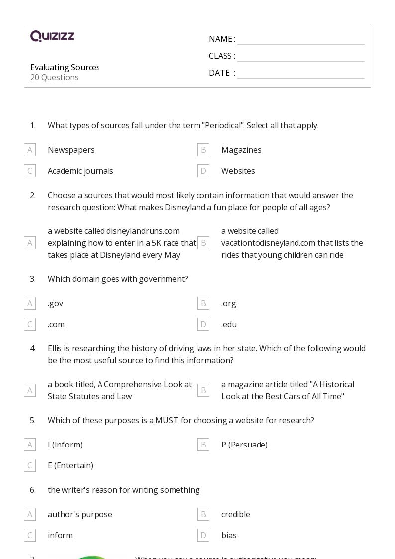 Evaluating Information Sources Worksheet printable pdf download