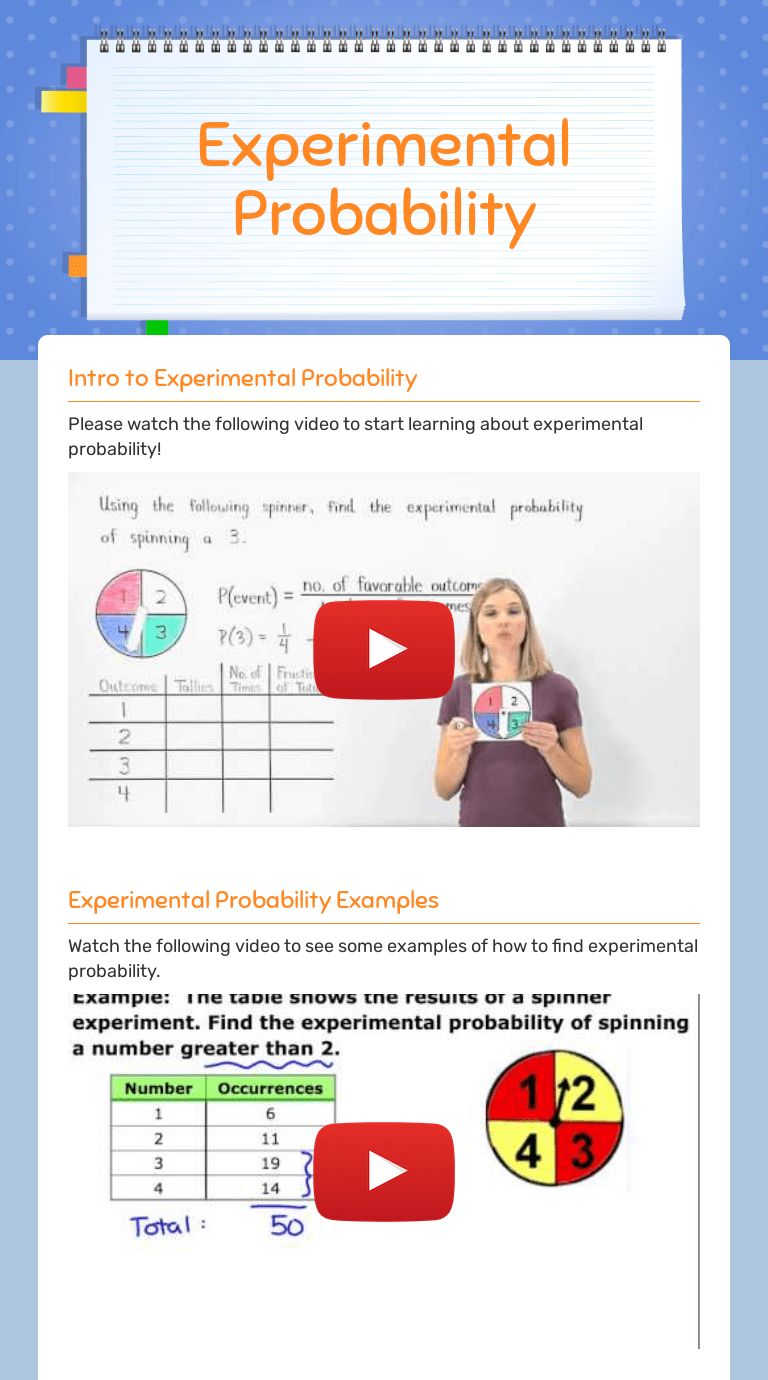 Probability worksheet 4 p.1 revised june 2010 experimental and theoretical probability name _____ per ____ date _____ amanda used a standard deck of 52 cards and selected a card at. Experimental probability worksheets are a great activity for students to share their understanding of the many ways to find and describe the probability. Find the experimental probability of landing on.