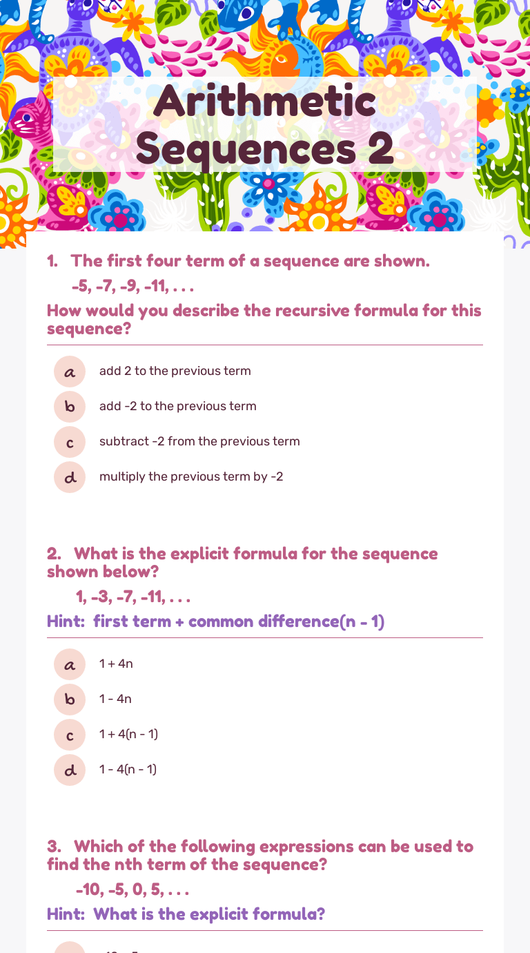 This Free Tool Helps Apply Your Skills On The Explicit Formula Of An Arithmetic Sequence.