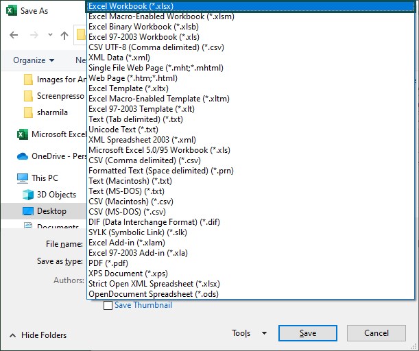 When you save an excel workbook for the first time or use the “save as” function, you are asked for a. The information in this article applies to excel 2019, excel 2016, excel 2013, excel 2010, excel 2007, excel online, and excel for mac. Supported file formats and their extensions are listed in the following tables for word, excel, and.