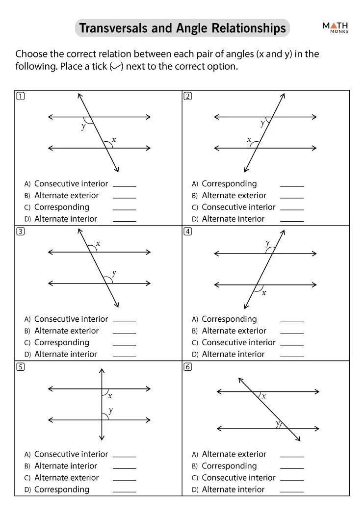 These Worksheets Look At The Use Of Transversal Lines And Parallel Lines.