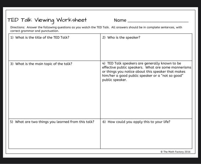 Ted Talk Worksheet For Students