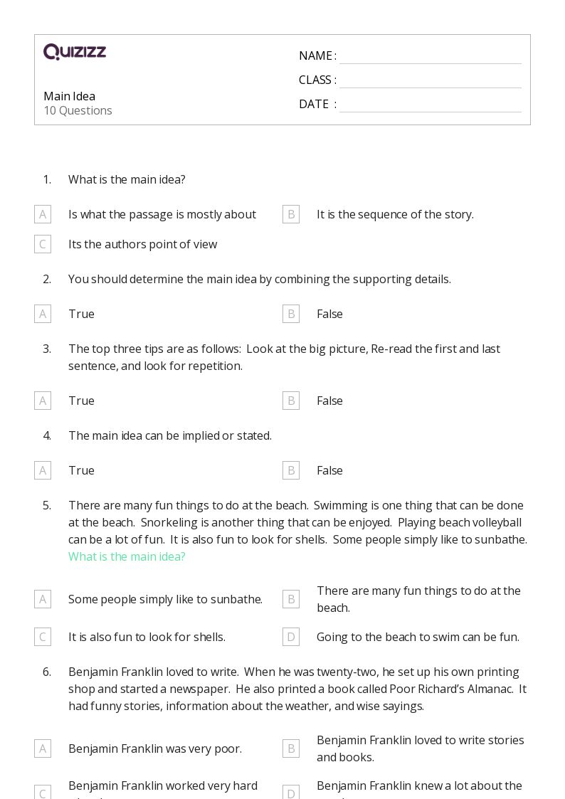 Printable grade 5 identifying the main idea worksheets 2025 & activities for teachers, parents, and homeschool families to help kids. Printable grade 5 main idea worksheets 2025 & activities for teachers, parents, and homeschool families to help kids succeed! Discover a collection of free printable worksheets for grade 5 reading & writing teachers, focusing on helping students recognize and comprehend.