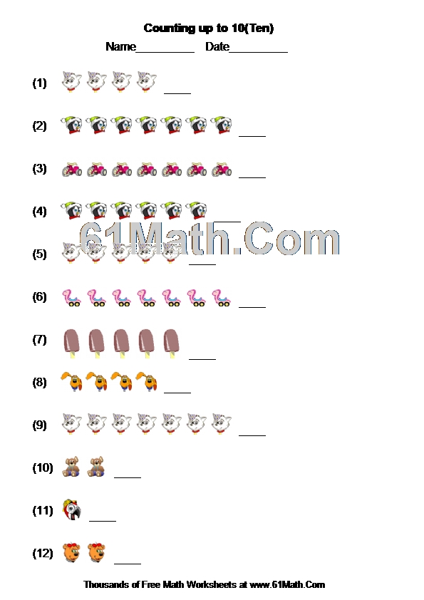 Counting up to 10(Ten) Create Your Own Math Worksheets