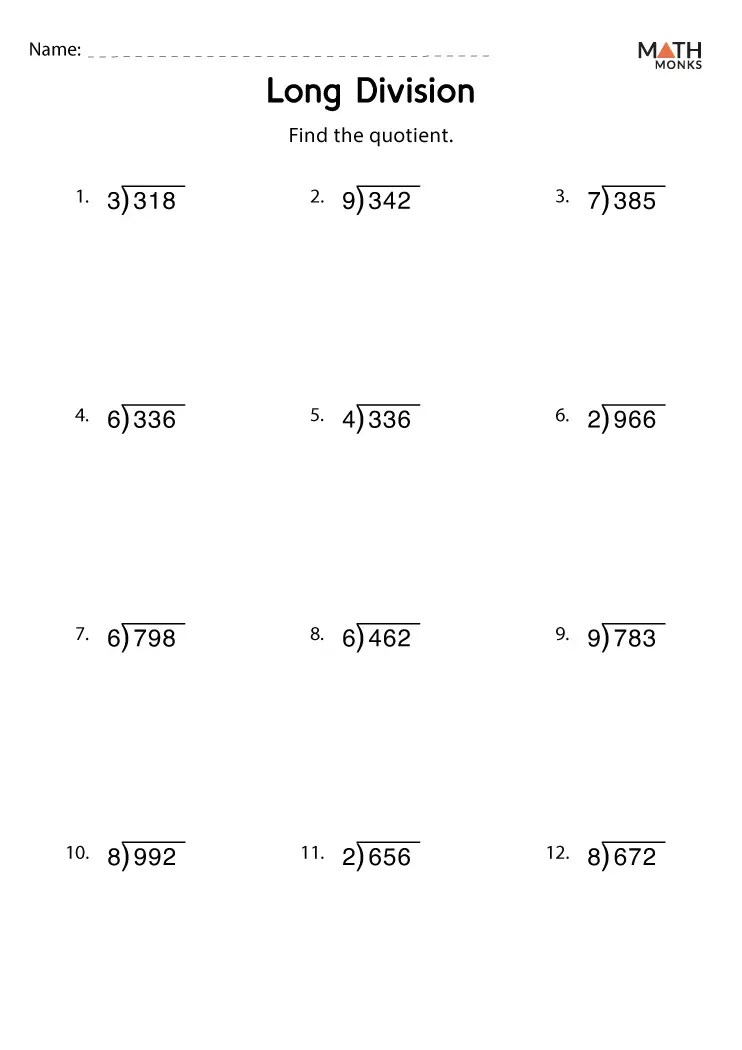 Long Division Worksheets Math Monks