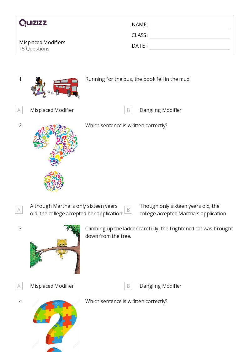 50+ Misplaced and Dangling Modifiers worksheets for 6th Year on Quizizz Free & Printable