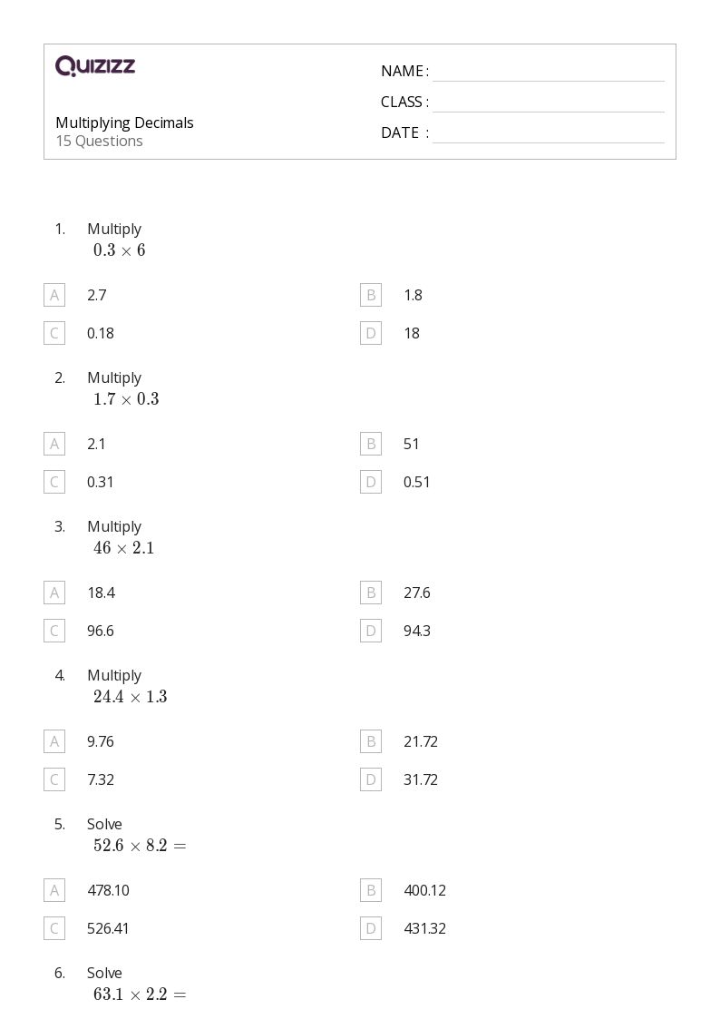 Teachers can also access interactive quizzes, games, and lesson plans on quizizz to enhance their math and decimals curriculum. Download free printable pdfs for multiplying decimals worksheets 6th grade. Quizizz offers over 50 worksheets for grade 6 students to practice multiplying decimals in different contexts and levels of difficulty. Practice decimal multiplication skills with free printable worksheets for grade 6..