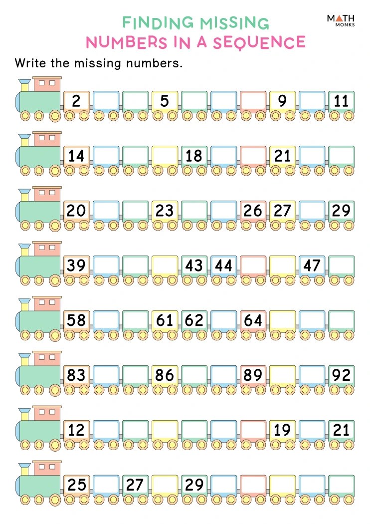 Number Sequence Worksheet Train Free Printable Puzzle Games