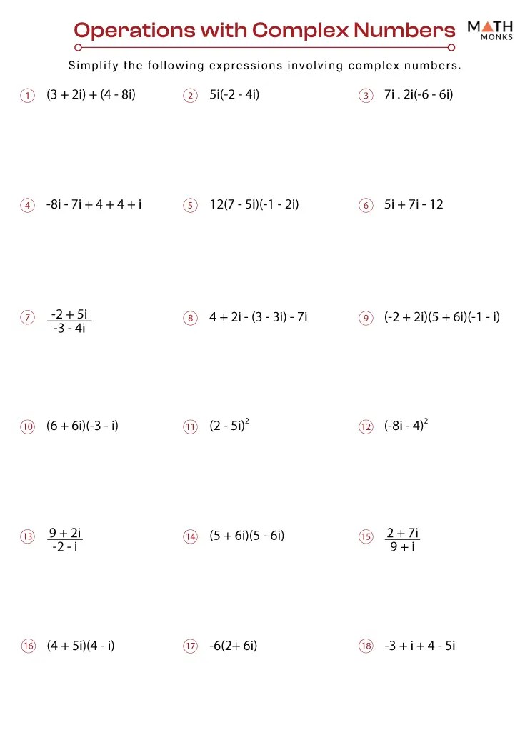 Complex Number Worksheets Math Monks