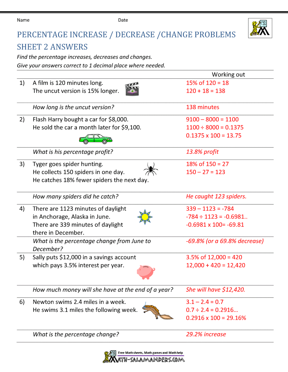 We have created a range of worksheets based around percentage increases and decreases. Solve each percent of change word problem. What is the percent increase?. What is the percent increase? Finding percentage change between two numbers;.
