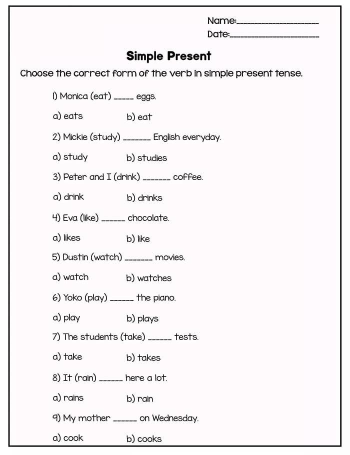 Click to download worksheet pdf to use in english. Check out 50+ questions under simple present tense exercises here. Practice the present tense and other verb tenses with printable worksheets. Check out this fantastic present simple verbs worksheet.