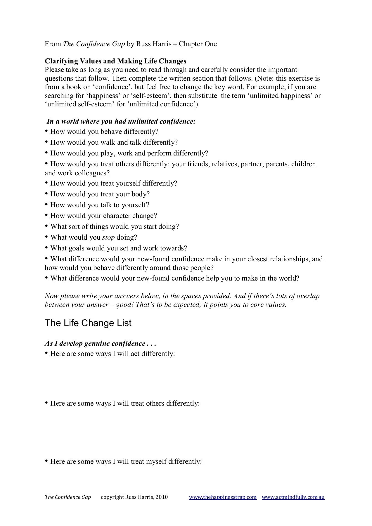 Russ Harris Happiness Trap Worksheets