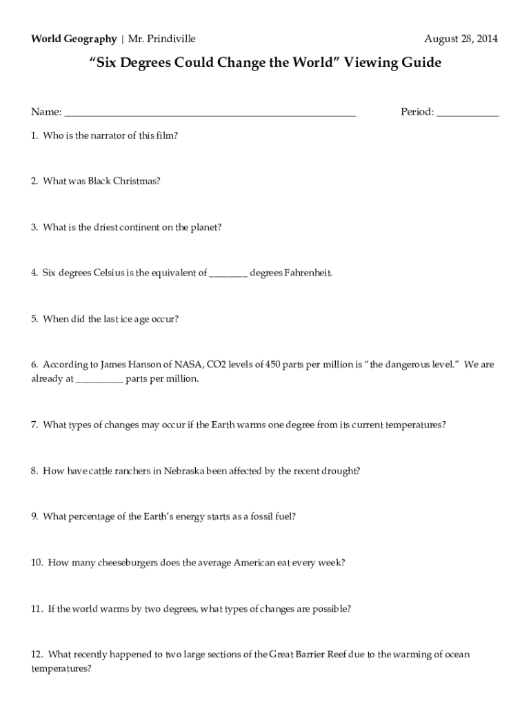 Science Movie Worksheets Six Degrees Could Change The World Answers