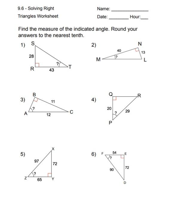 Use trig ratios and your graphing calculator to approximate each length and angle measure to the nearest tenth (these are all right triangles). Solve the question you wrote. This printable pdf worksheet can be used by students in 5th, 6th, 7th and 8th. Round to the nearest tenth. Solve the right triangle shown below and round decimals to the nearest.