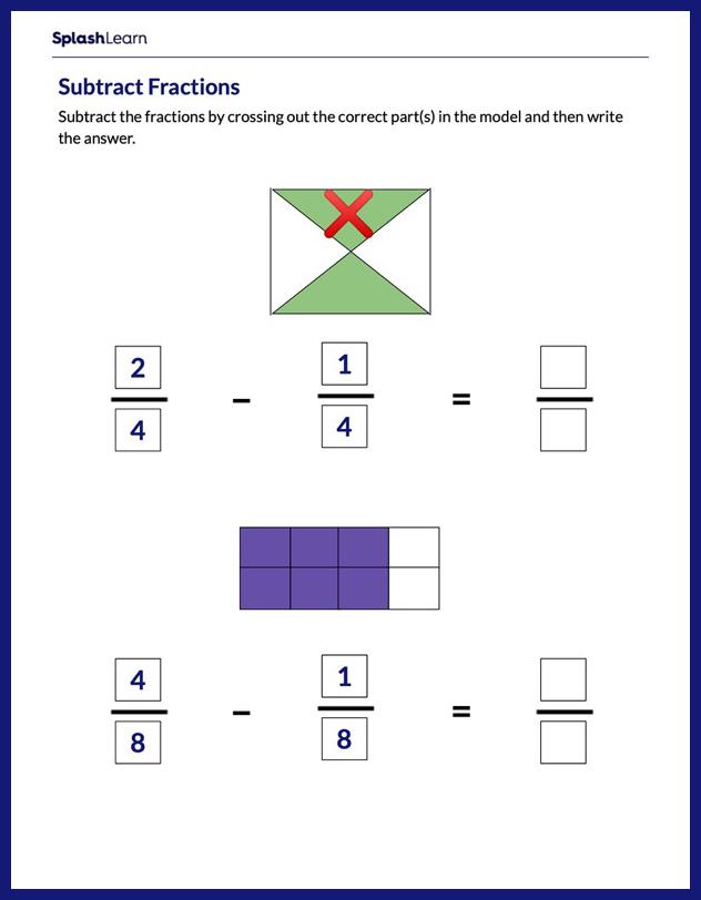 Subtract Fractions Using Model Math Worksheets SplashLearn