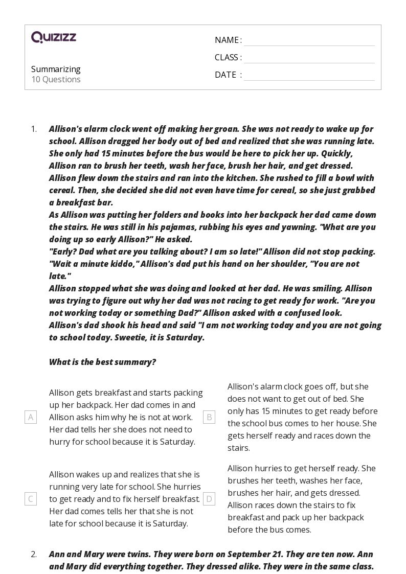 50+ Summarizing worksheets for 4th Grade on Quizizz Free & Printable