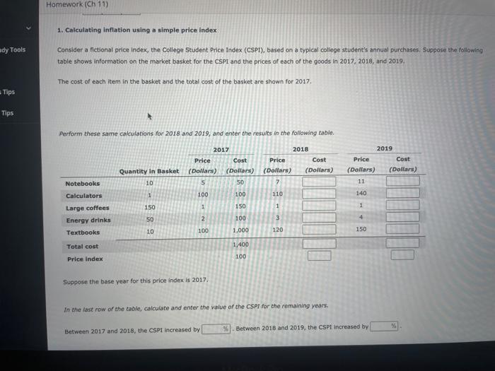 Solved 1. Calculating inflation using a simple price index