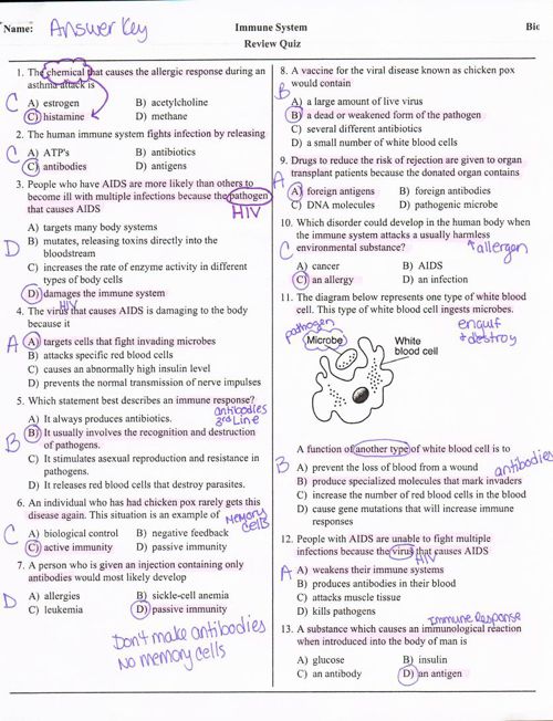 Immune System And Disease Worksheet Answer Key