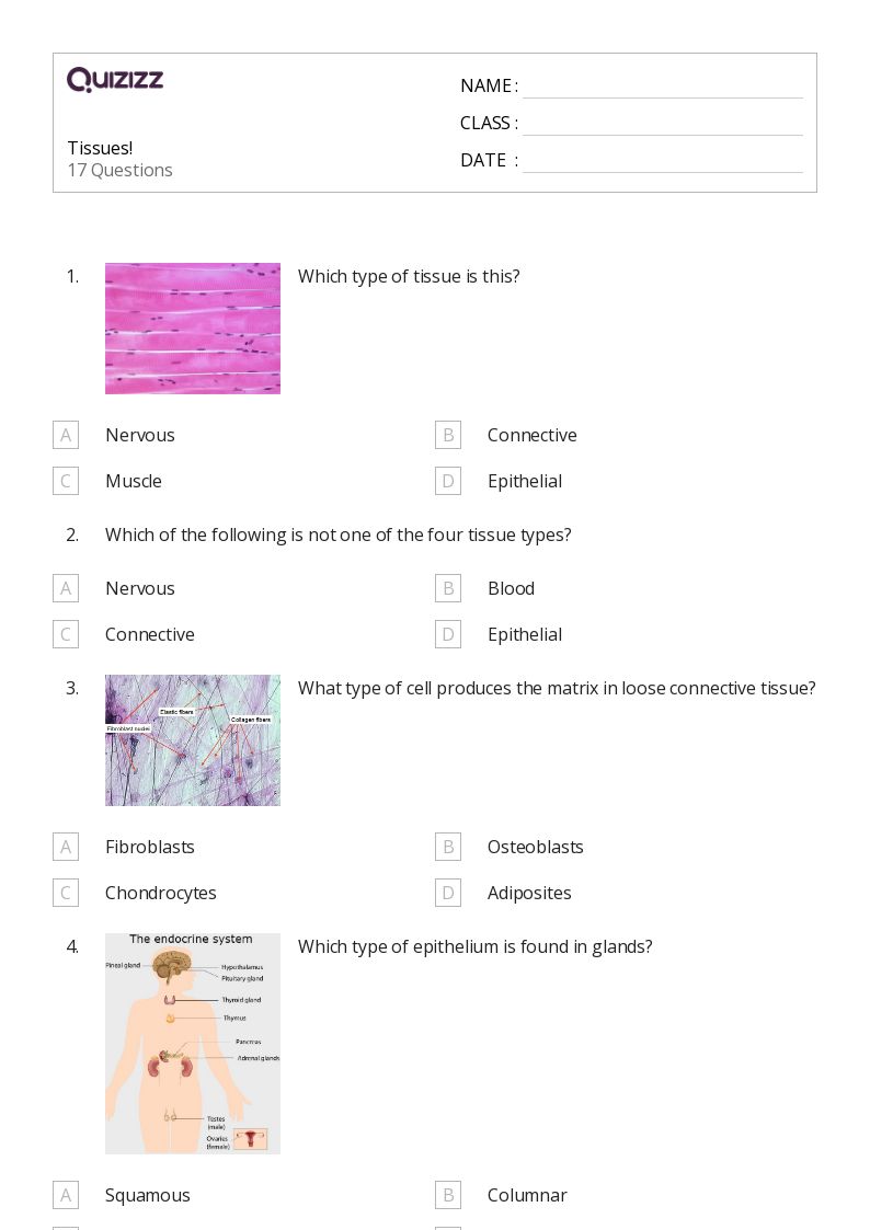 The four major tissue types are:. A collection of nuclei / a collection of organelles / a collection of cells / a collection of organs. This activity is to help you learn the four primary tissue types,. Discover a world of learning with our free printable science tissues worksheets, perfect for science teachers and students alike. The study of tissues.