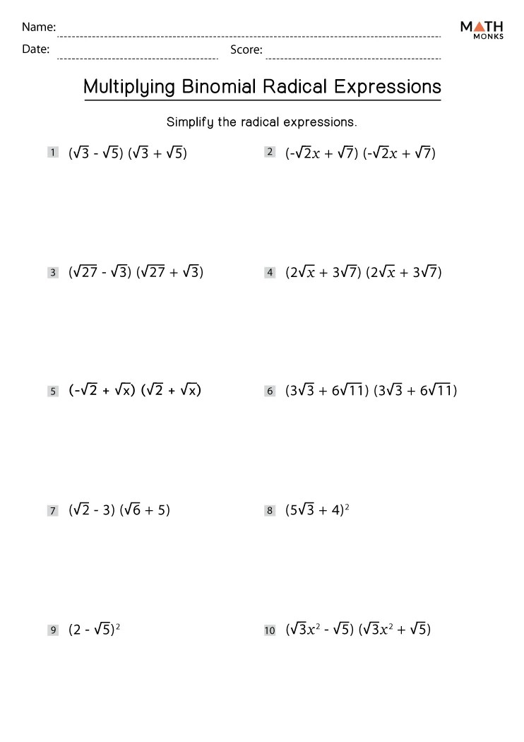 Multiplying Binomials Worksheets Math Monks