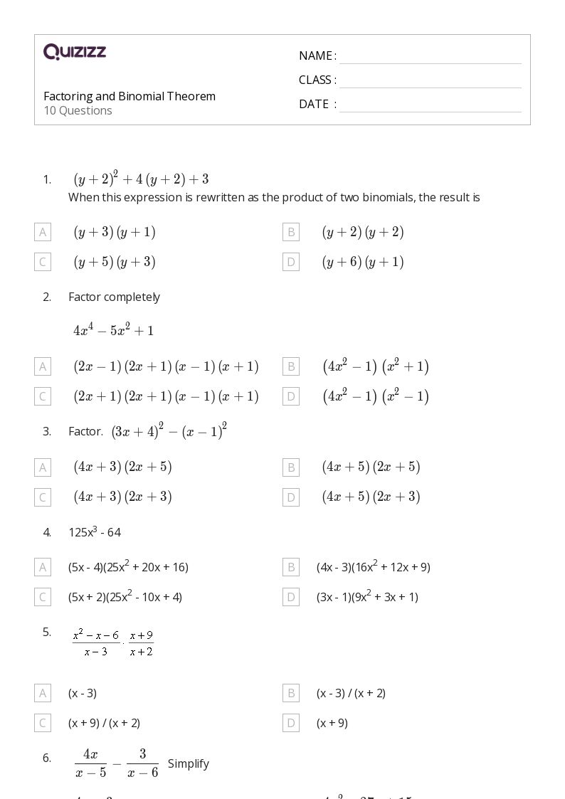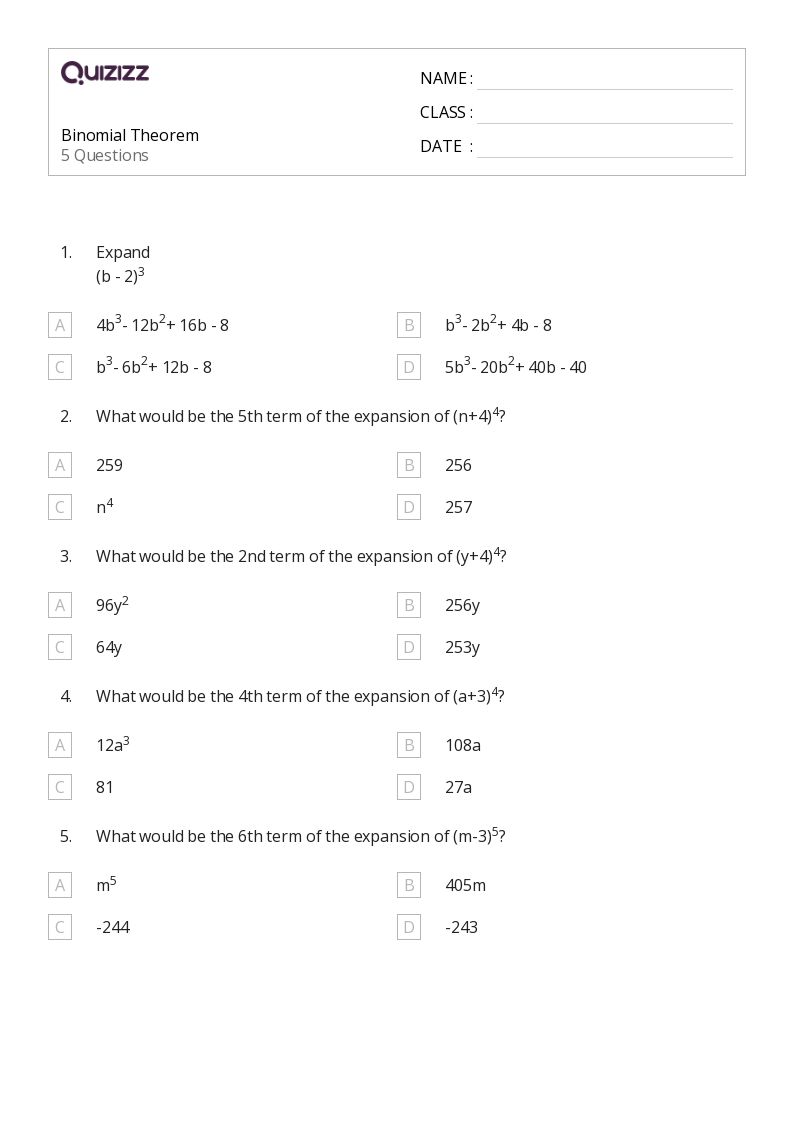 50+ binomial theorem worksheets for 10th Year on Quizizz Free & Printable