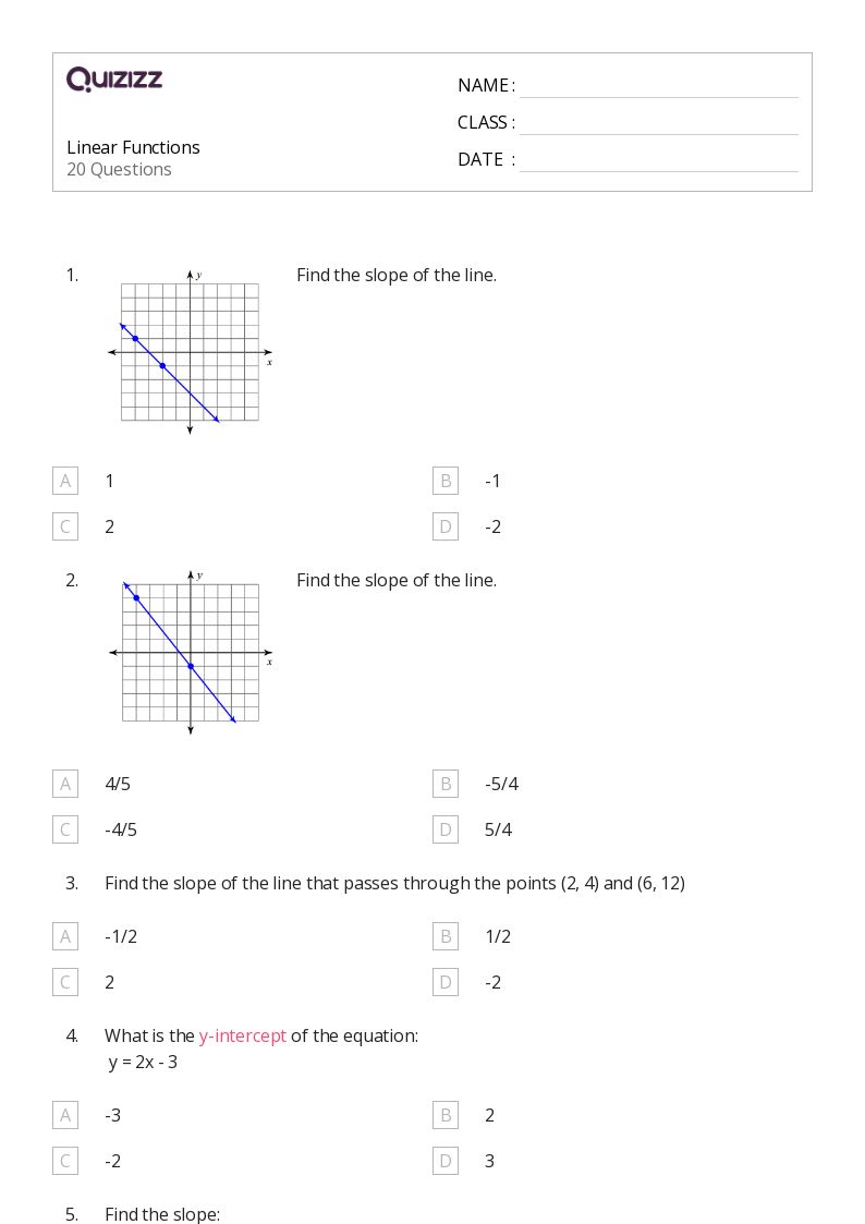 Find the slope of a line parallel to each given line. Find the slope of each line. Find the slope of the line through each pair of points. Describe linear function using a linear equation. Linear functions worksheets help kids to improve their speed, accuracy, logical and reasoning skills in performing simple calculations related to the.