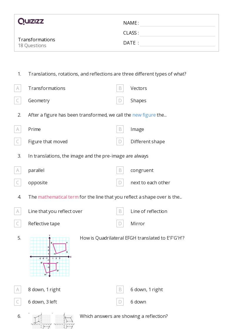 50+ Transformations worksheets for 7th Grade on Quizizz Free & Printable